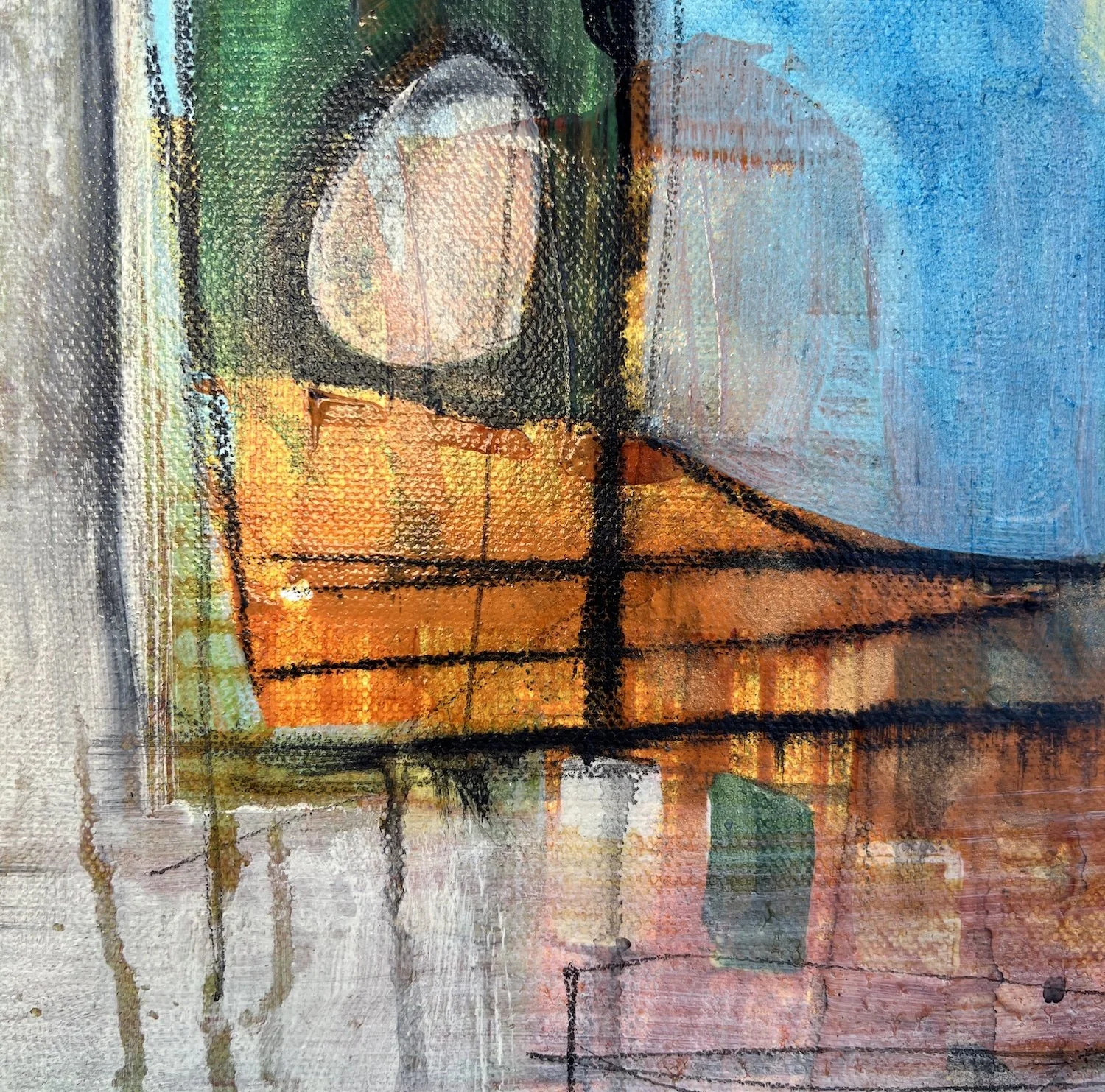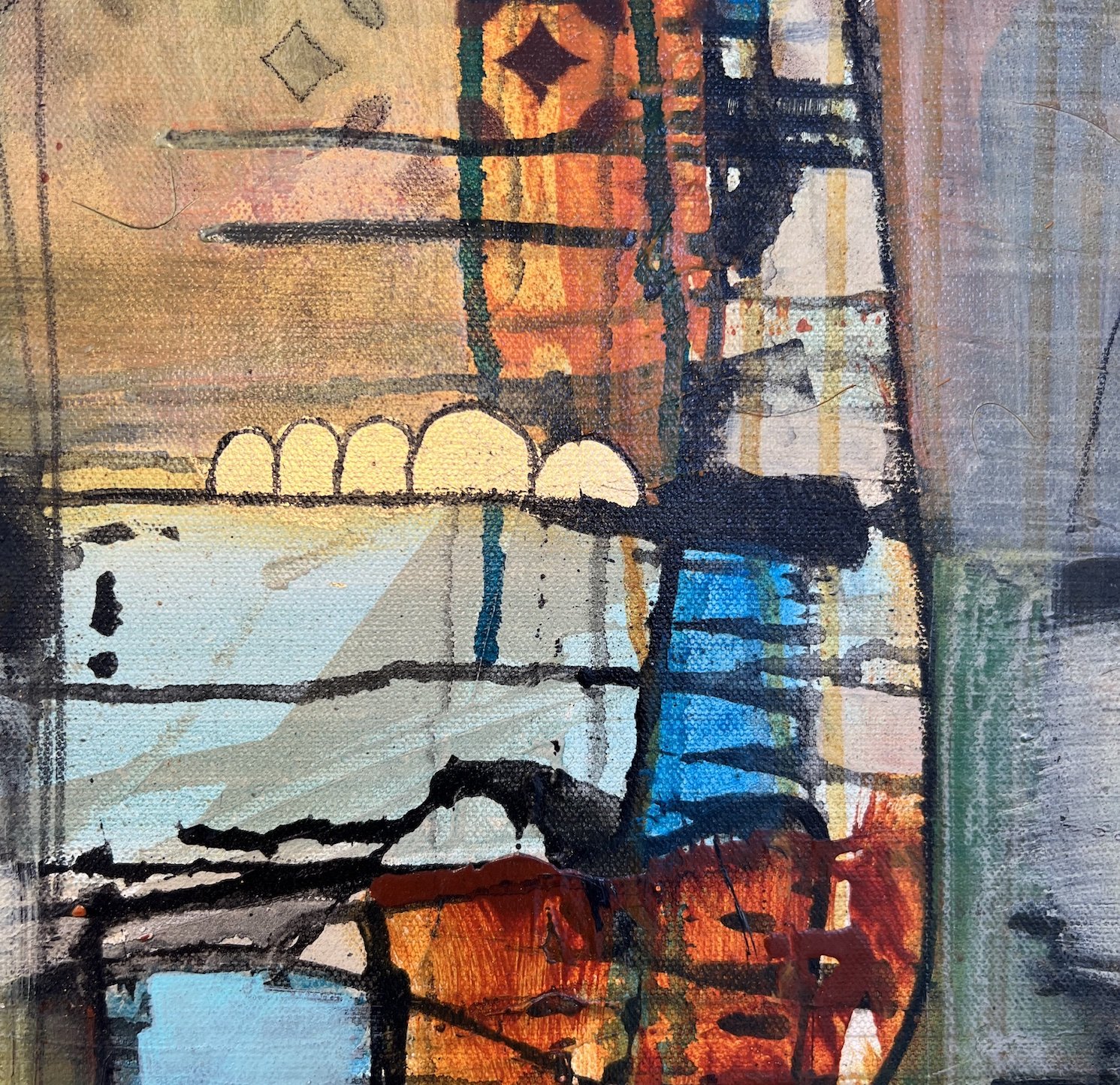 Acrylic, oil and gold leaf on premium canvas.